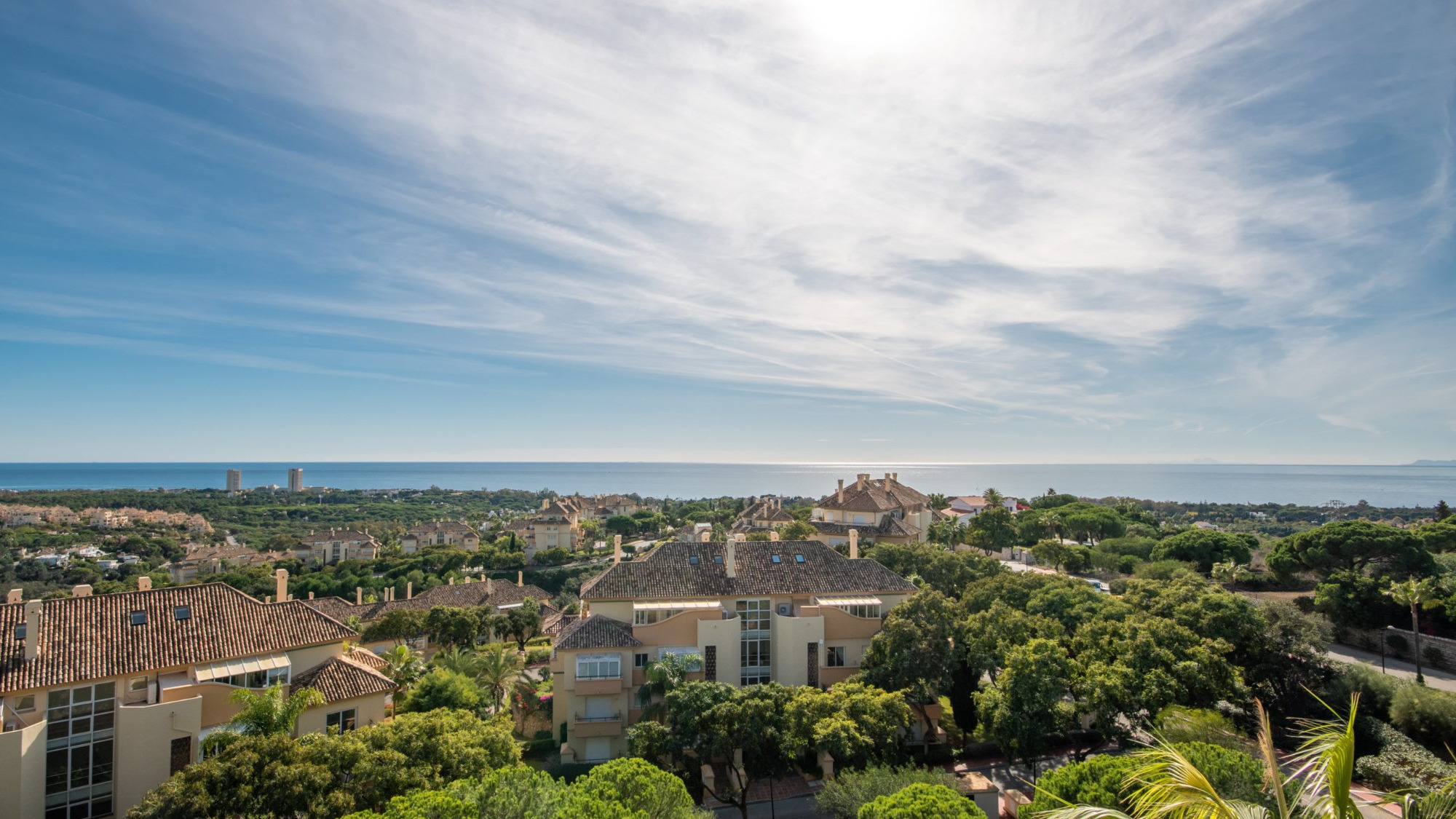 Charming One-Bedroom Penthouse with Panoramic Views in Elviria, Marbella This fully independent one-bedroom penthouse, located in the tranquil hills of Elviria, Marbella, offers stunning panoramic views of the sea, mountains, and golf course. From the kitchen to the spacious terrace, every corner invites you to relax and soak in the sun, with total privacy and peace. Whether you're looking for the perfect holiday escape or a serene place to live year-round, this penthouse has it all. The apartment features a minimalist and comfortable design. It includes a full bathroom with both a shower and bathtub. The separate kitchen not only maximizes space in each area but also offers the opportunity to customize it and make it feel like home from day one. The generous bedroom has ample room to organize your belongings, and the living area easily accommodates a sofa and a dining table for four. Regardless of the season, your comfort is guaranteed with central air conditioning and heating. An instantaneous electronic water heater provides hot water on demand, perfect for a warm bath any time of day. The building also offers high-speed fiber optic internet—ideal for remote work or streaming without interruptions. The large terrace is perfect for outdoor living: dine alfresco, sip your morning coffee, enjoy a glass of wine or cocktail, relax in a hammock, or even nap under the sun thanks to the versatile outdoor furniture. Access to the penthouse is seamless, with a lift that takes you directly from the underground garage to your front door. As the only apartment on the top floor, you’ll enjoy unmatched privacy. The property is sold with a spacious underground parking space and a storage room for your convenience. Set in a well-maintained urbanisation surrounded by lush gardens and mature trees, the complex features three communal swimming pools—the largest of which is directly in front of the apartment and visible from the kitchen. The beach and local amenities are just a 5-minute drive away. Elviria offers a wide range of restaurants, cafés, and shops, catering to all tastes and budgets. The nearby Commercial Centre includes supermarkets, pharmacies, bars, car rentals, and more. It’s easily accessible—just a 4-minute drive or a pleasant 15–20-minute walk downhill. Public transport is also available, with permanent taxi stands and bus stops in the same area. Elviria is ideally located just 10 km from Marbella’s city center and La Cañada shopping mall, and 15 km from Puerto Banús. Golf lovers will appreciate that the Santa María Golf Course is only a 5-minute drive away, with many more golf courses spread throughout the Costa del Sol.